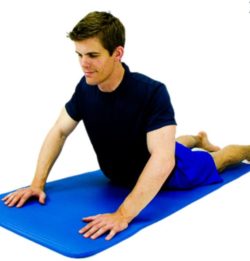The press up exercise is a great way to relieve sciatic nerve pain associated with a herniated disc. This exercise helps to relieve pressure on the nerves coming out of the spine from the herniated disc. If you notice that your sciatic nerve pain is increased when bending forward, this exercise may help you significantly. Start by lying face down then slowly press up and arch your back using your arms. Perform this exercise for 3 sets of 10 repetitions about 3-5 times per day (Figure D).